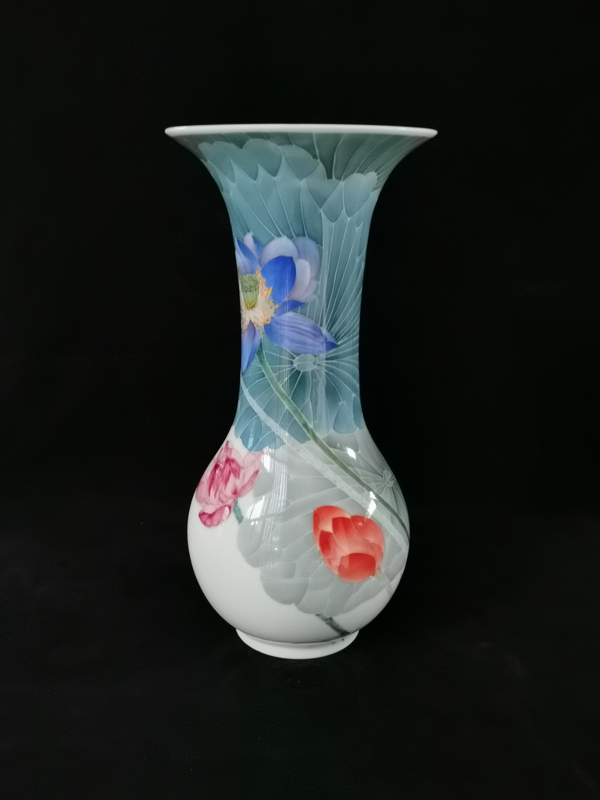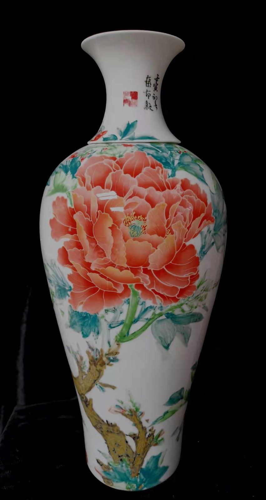 蔡布谷作品《牡丹瓶圖》。藝術家的陶瓷作品以手工繪畫,以精湛的工藝手法創作「新釉下五彩瓷器」。