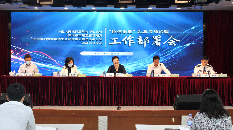 4月22日,深圳人民銀行、深圳市市場監管局、深圳市委網信辦、深圳市公安局四部門聯合召開深圳市「徵信修復」亂象專項治理工作部署會議,轄內接入央行徵信系統的175家金融機構的主要負責人、7家徵信機構主要負責人等700餘人線上參會。