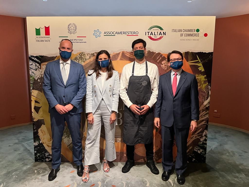 The project TRUE ITALIAN TASTE, part of the campaign The Extraordinary Italian Taste – is promoted and financed by the Ministry of Foreign Affairs and International Cooperation, and it is implemented by Assocamerestero, in collaboration with the Italian Chambers of Commerce abroad. Mr. Clemente Contestabile (Consul General of Italy in Hong Kong), Mr. Davide De Rosa (Partner at Gianni & Origoni and Vice President of the Italian Chamber), Ms Caterina Bernardini de Pace (the General Manager) and Mr Davide Ciotti (the Deputy General Manager) were invited to the luncheon.