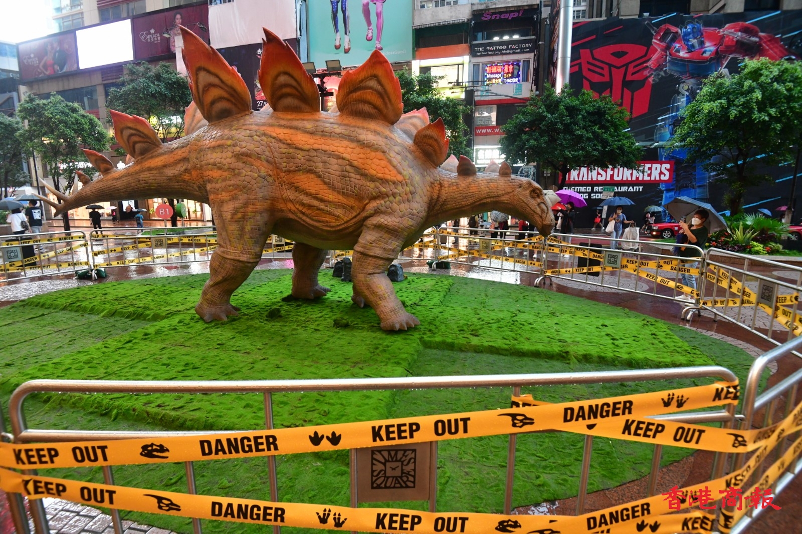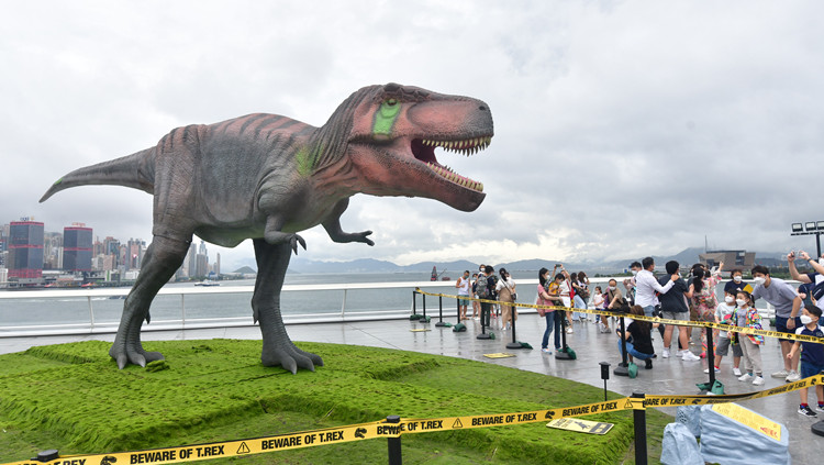 兩隻大型機動暴龍及劍龍,正在尖沙咀海港城、銅鑼灣時代廣場外,以一比一原大的規模首次在港展出。