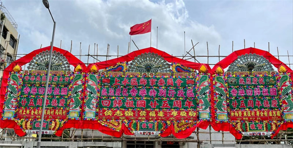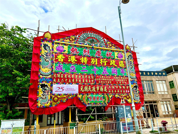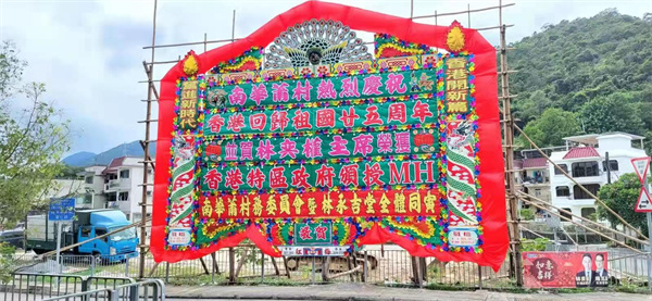 今年7月1日是香港回歸祖國25周年紀念日,此次慶賀香港回歸祖國25周年,新界居民紛紛架設傳統大型花牌陣覆蓋新界,與新界市民共慶共樂,共襄盛世。傳達祝福同時,也促進香港傳統手藝傳承,促進文化保育。