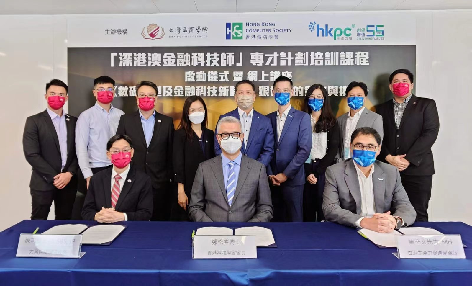 日前,大灣區商學院攜手香港電腦學會、香港生產力促進局舉行「深港澳金融科技師」專才計劃培訓課程 Shenzhen Hongkong-Macau Fintech Professional Programme (SHMFTPP)啟動儀式。香港電腦學會會長鄭松巖,香港生產力促進局總裁畢堅文,及大灣區商學院校長陳誌輝出席並簽署合作備忘錄。課程有助於培育有誌於大灣區金融科技行業發展的人才,推廣深港澳金融科技師的專業認證,助力助力「金融科技專才」的培養。