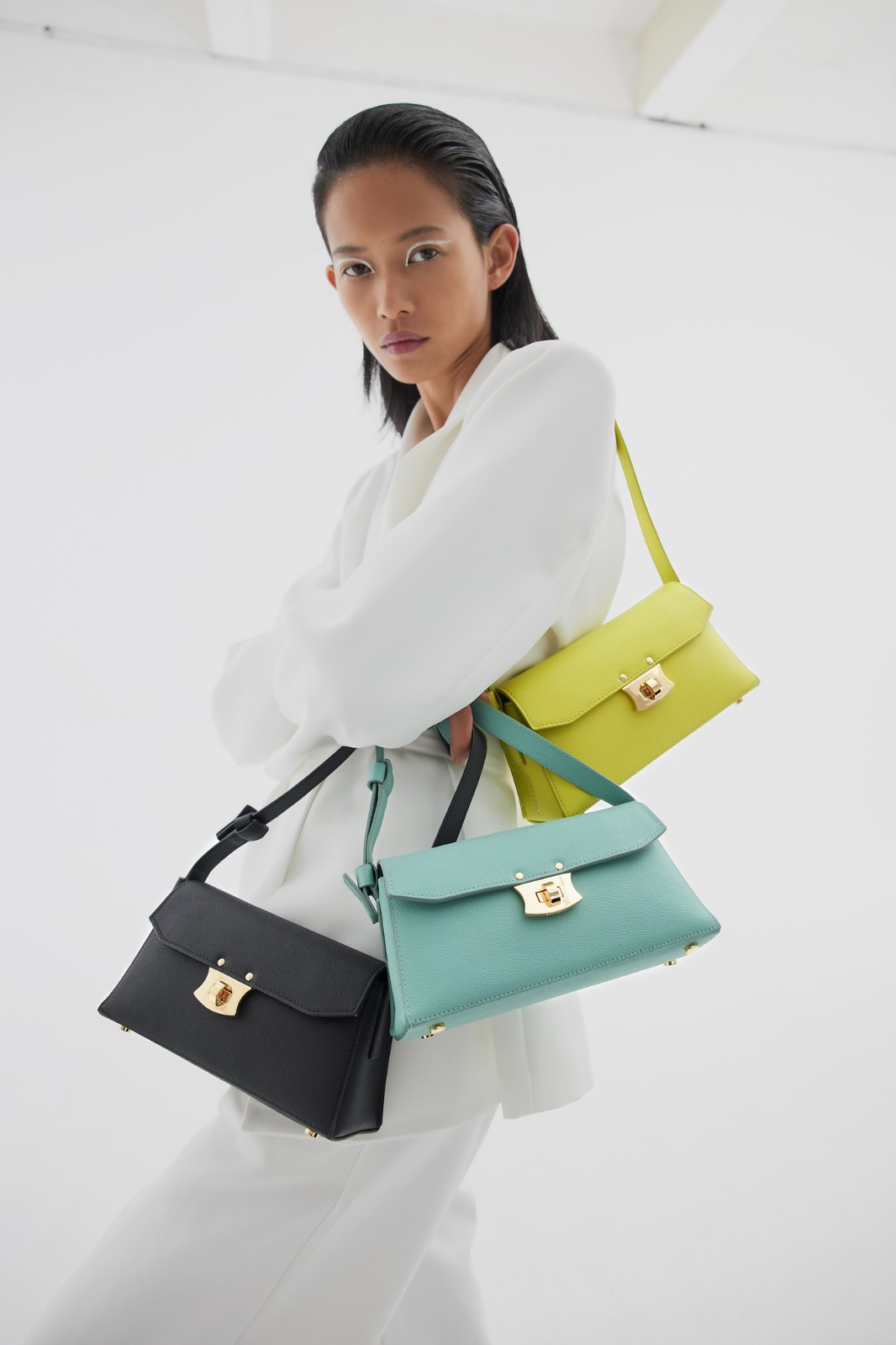 今季每件皮革單品,顏色選擇如同調色盤般豐富,包括焦紅色、瀝青灰色、杏仁奶白、檸檬黃、湖水藍、草綠、暖棕褐色、焦糖啡等,袋身造型都可見設計師的用心。如ZHARIKA Crossbody,充滿摺疊層次感的腰豆形設計手袋,輪廓如種子般在陽光下孕育成長,充滿流暢曲線美,袋身輕盈,既可作為單肩袋,又可作斜背袋或手拿包。NOOR Bubble Satchel則有圓潤的輪廓,好比靜待成長開花的蓓蕾,打開安全磁石上蓋,恍如綻放的花朵。只要推前拉下手挽上的皮革扣便可調節長度,安全收納隨身物品。ELIANA Clutch採梯形設計,配以精緻的前幅斧形扭鎖開合,加上清新的色調,平衡摩登與精緻的感覺。亮面的石紋壓紋,以按扣收緊肩帶長度,展現不同的都市女性造型。
