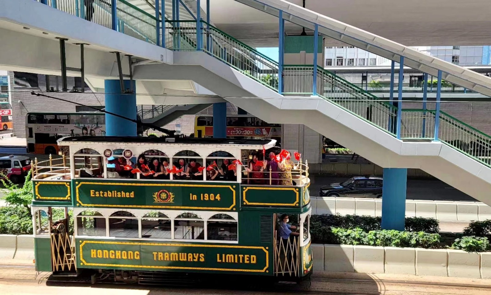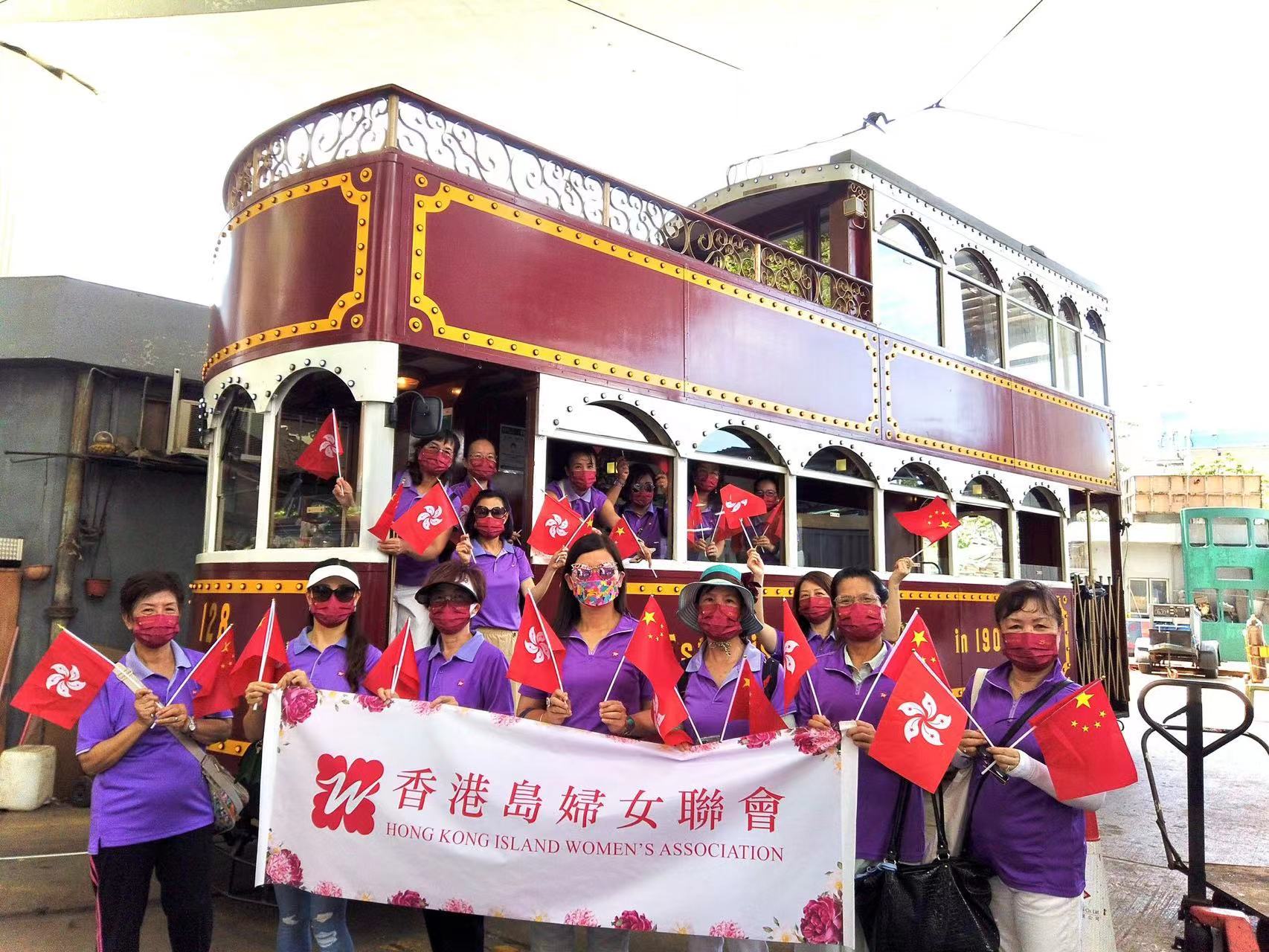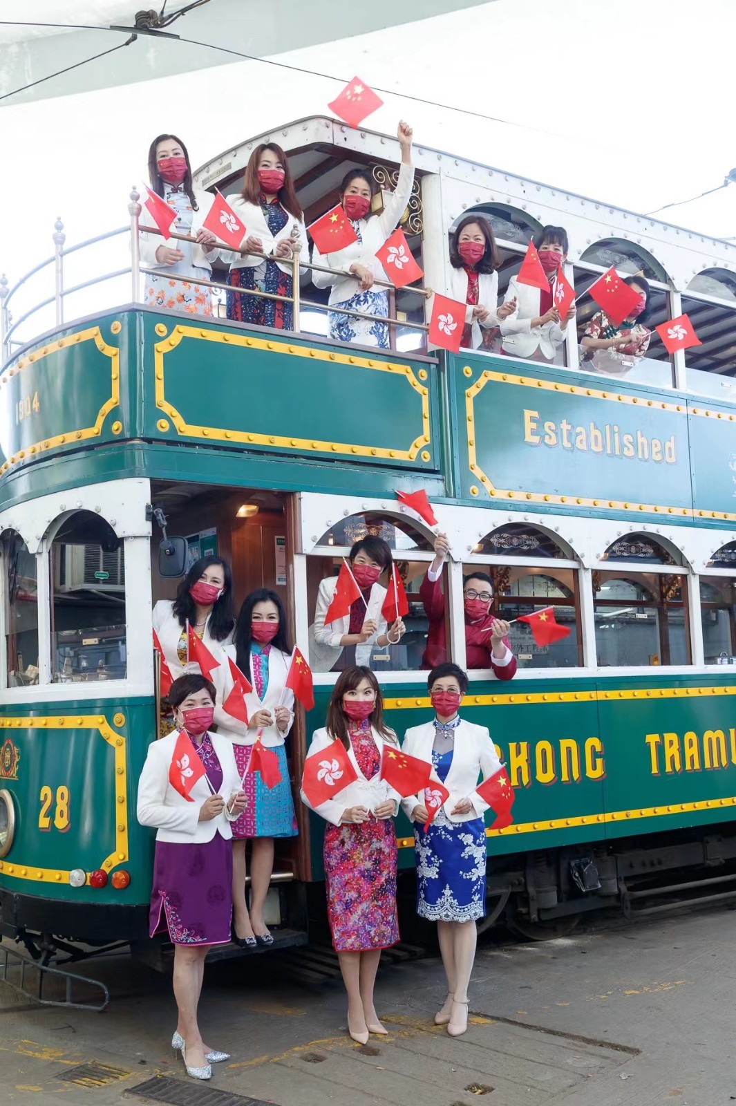 臨近七月一日香港回歸祖國25周年的大日子,香港島婦女聯會一眾成員穿上旗袍及中式服裝手持國旗區旗,坐上充滿香港特色的電車於香港島各特色景點拍照打卡,傳播中國傳統文化,喜迎「七一」。