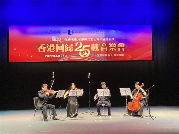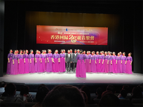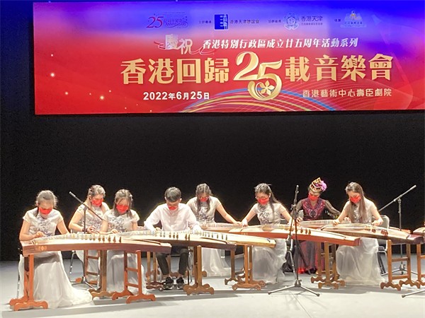 由香港天津聯誼會主辦、香港天津工商專業婦女委員會協辦的《慶祝香港特別行政區成立廿五周年活動系列──香港回歸25載音樂會》,日前在香港藝術中心壽臣劇院舉行。節目內容豐富,包括合唱團大合唱、歌唱、鋼琴演奏、古箏九重奏、弦樂三重奏、拉丁舞、現代爵士舞、太極扇、京劇、相聲、詩歌朗誦等,精彩的節目引來台下陣陣掌聲,氣氛熱烈。