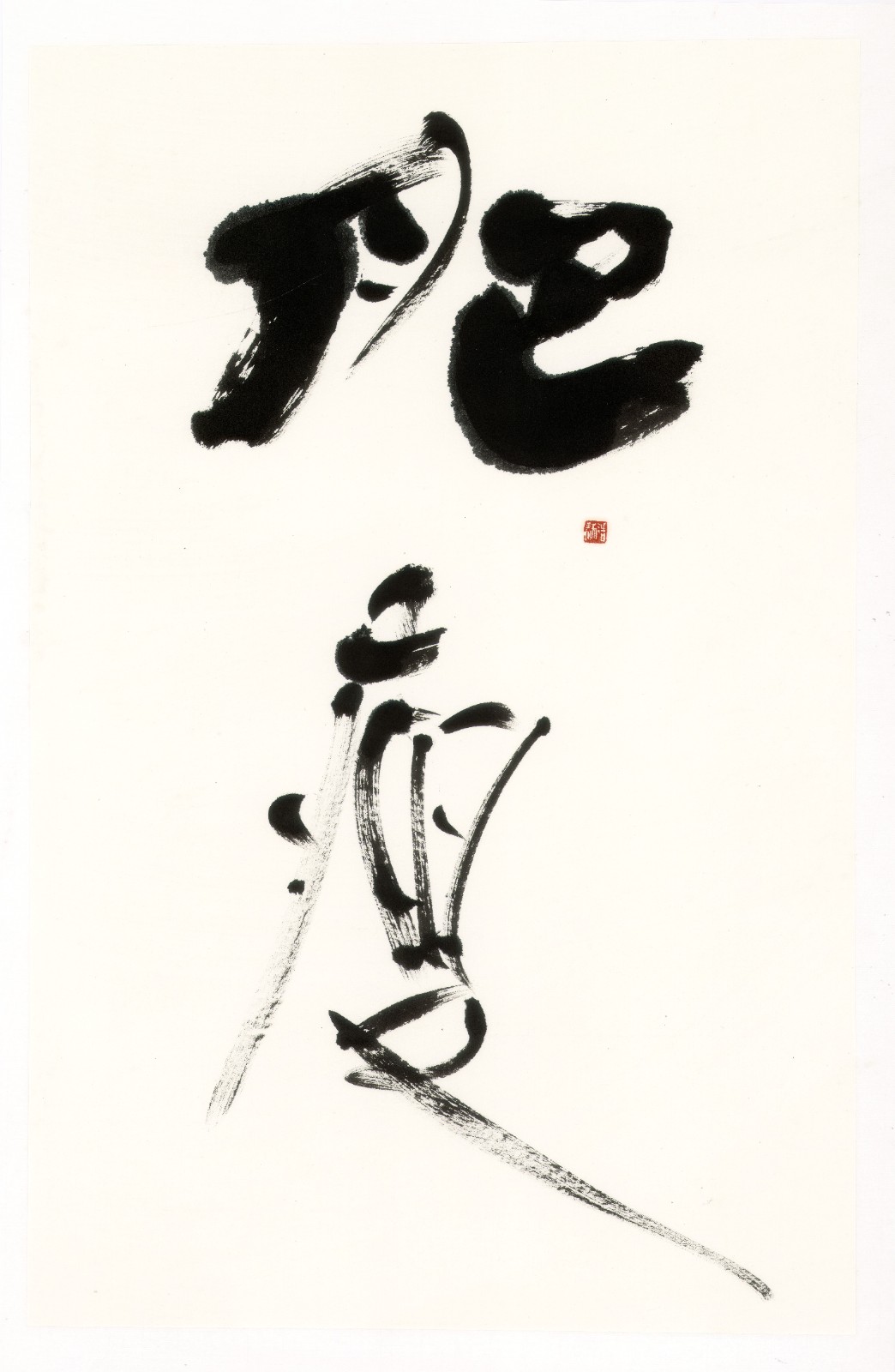 容浩然獲資助書法作品「矛與盾」系列,融合他學畫與書法的經歷,主要以兩個相反意思的字體組成,每幅作品皆藏著「矛盾」「對立」的意思,如《清濁》、《前後》、《肥瘦》等,字義相反,並以此書寫出恍如繪畫的字體。創作時他尊崇書法的基本邏輯,必須基於漢字的語言結構,且緊守書寫原則——一氣呵成,而非繪畫般可疊加、停頓。作品《肥瘦》中的「肥」字體圓潤,「瘦」字體纖長,儘管兩個字的筆墨粗細不一,卻呈現濃淡乾濕的豐富質感,不論是線條、布局、結構均相當協調,這樣的書體讓不懂書法的人或西方人更易接受及欣賞。他認為正是作品保持傳統元素之餘又有新意,而讓他獲選。