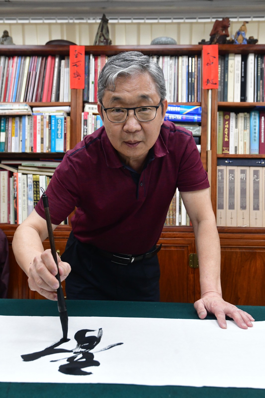 國家「十四五」規劃明確支持建設香港成為中外文化藝術交流中心,在容浩然眼中,香港能否成為繼紐約、倫敦之後的另一個世界藝術交易中心?容浩然表示任重道遠,這裏雖然有中西文化交融的特點,但是在香港要成為藝術家,且能專門靠書畫為生的人不多,不少有名氣的書畫家仍以教學為主,「香港的市場太小,面對700多萬人,除非是知名度極高的藝術家,否則難以『出頭』。我們應該放大『格局』,內地擁有龐大人口,按比例計算,傑出人才也比香港多,不妨多到內地與其他人才交流、發展,積極參與內地書法比賽,提升知名度。加上國家支持,中國不斷富強,內地藏家購買力增強。香港依附於內地,相信未來香港定會成為世界藝術交易中心。」 (記者:Janice 部分圖片:崔俊良)