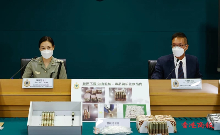 海關毒品調查科機場調查組指揮官林澤麟表示,本年首六個月在機場檢獲的毒品數量比去年同期高出98%,相信在過去兩年海關大力打擊不法分子利用空運郵包的販毒手法取得顯著成效,逼使國際販毒分子改變策略,改而將大量毒品混入一般空運貨物中偷運進港,令檢獲的毒品較去年同期明顯上升。