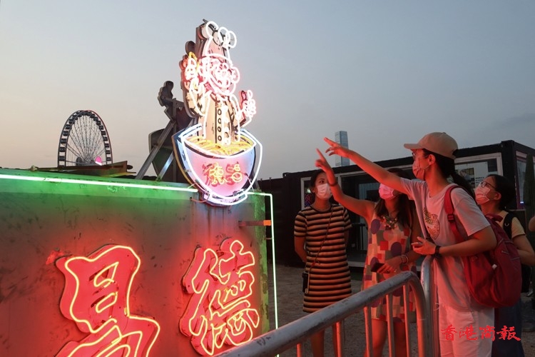 在中環海濱活動空間舉行的《中環夏誌》中,推出名為「香港霓虹--未完的結局」展覽,展出數個保育得來並經不同程度修復的餐飲業霓虹招牌,呈現和探討香港霓虹的前世今生,希望讓參觀者思考其未完的結局。此外,大會還舉行有傳統霓虹招牌製作師傅主持的工作坊示範、導賞團、講座和展覽等,讓市民深入了解深厚霓虹歷史、獨有製作技藝和設計特色。(記者 馮瀚文攝)