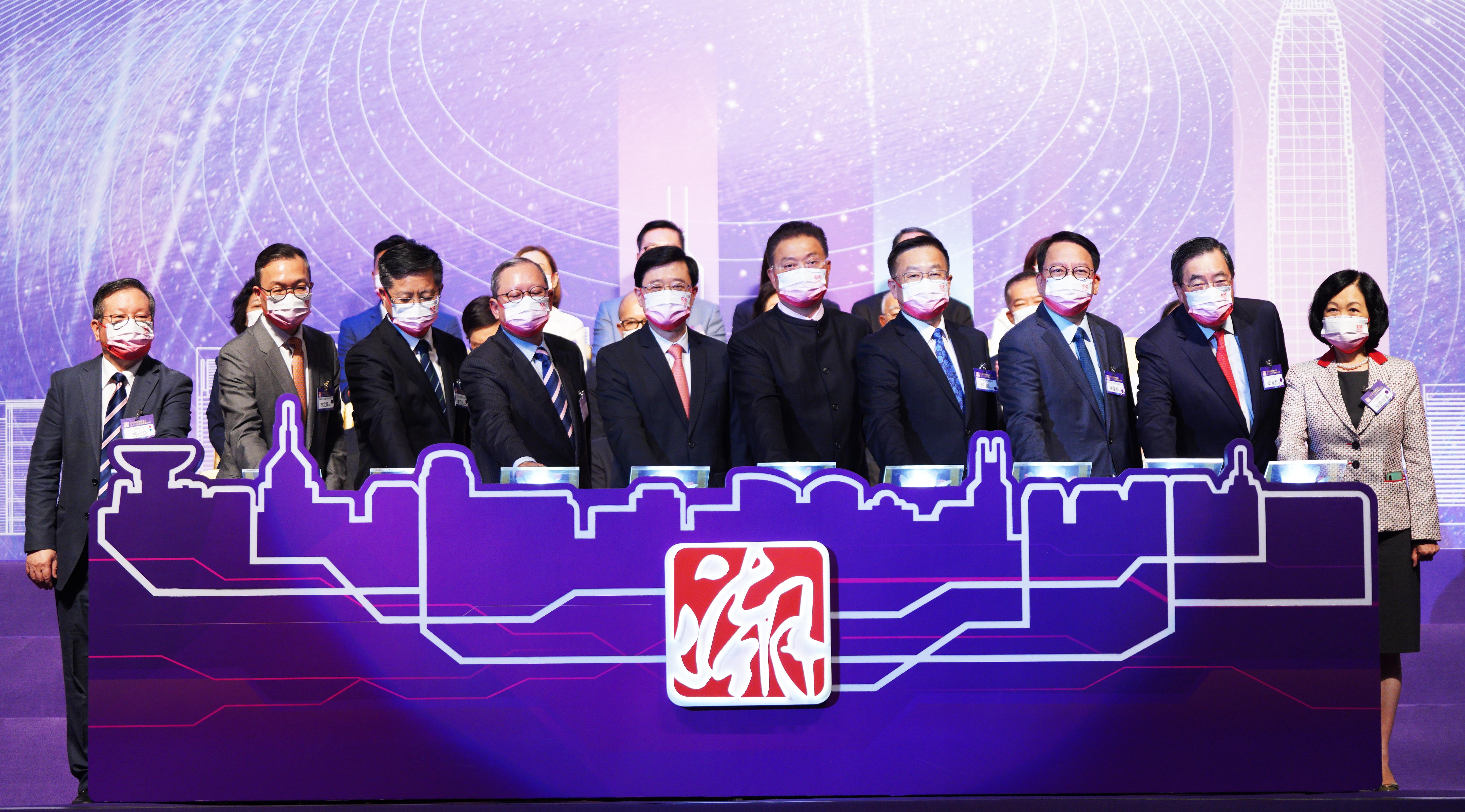 頂圖:(左起)馬介欽、林定國、李江舟、林建岳、李家超、陳振彬、何靖、陳國基、梁君彥、葉劉淑儀主持啟動儀式。