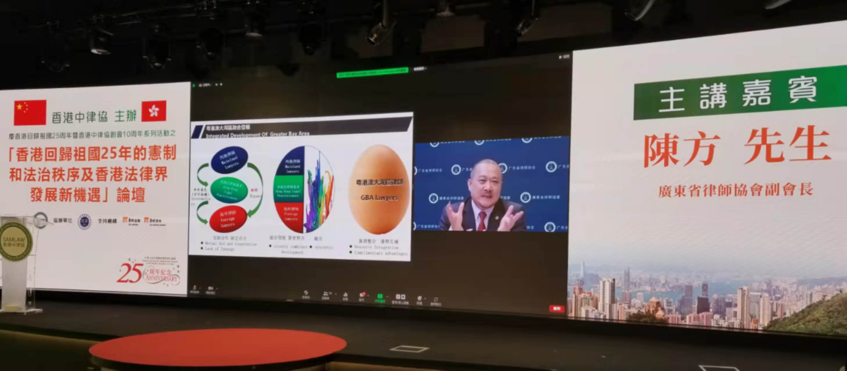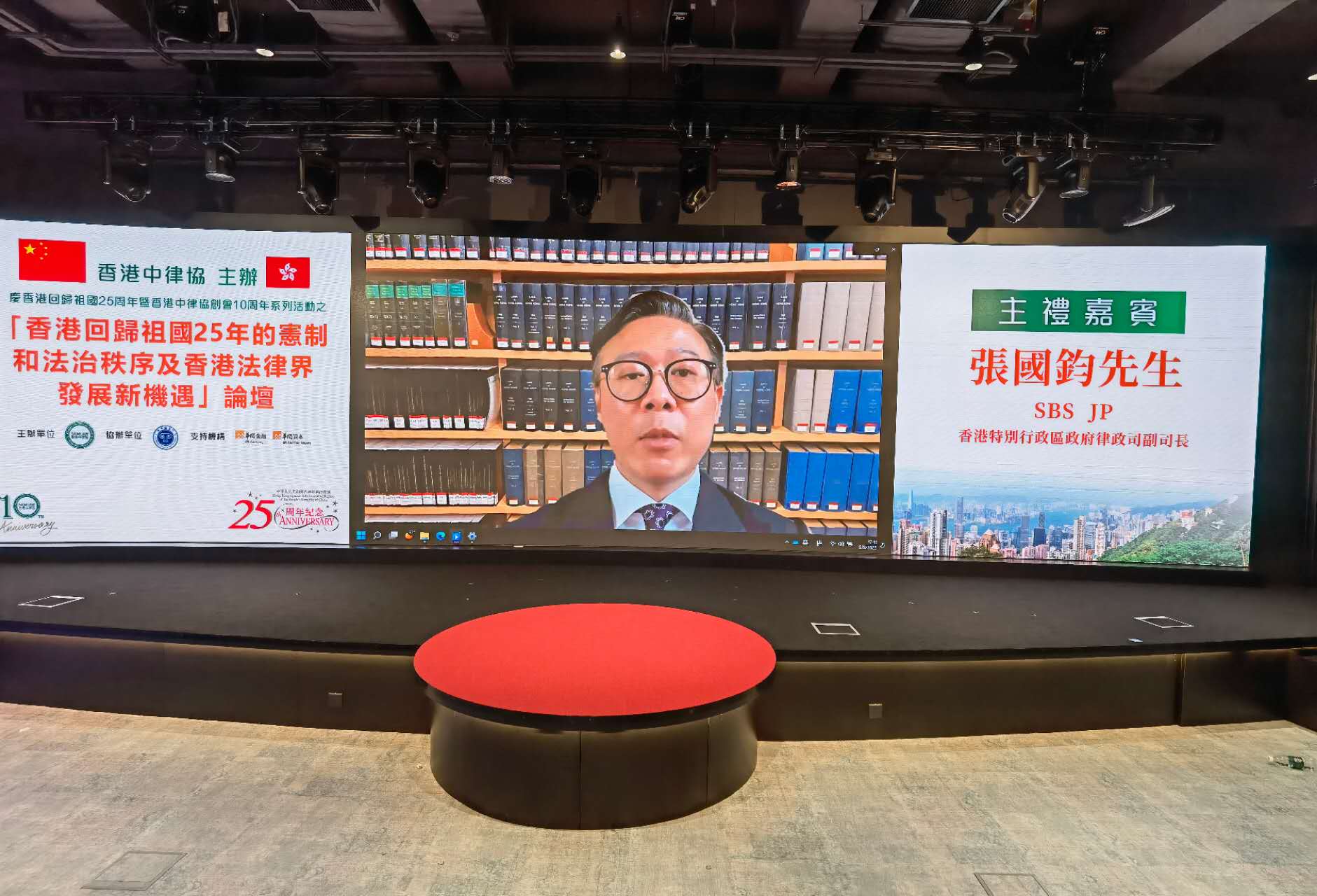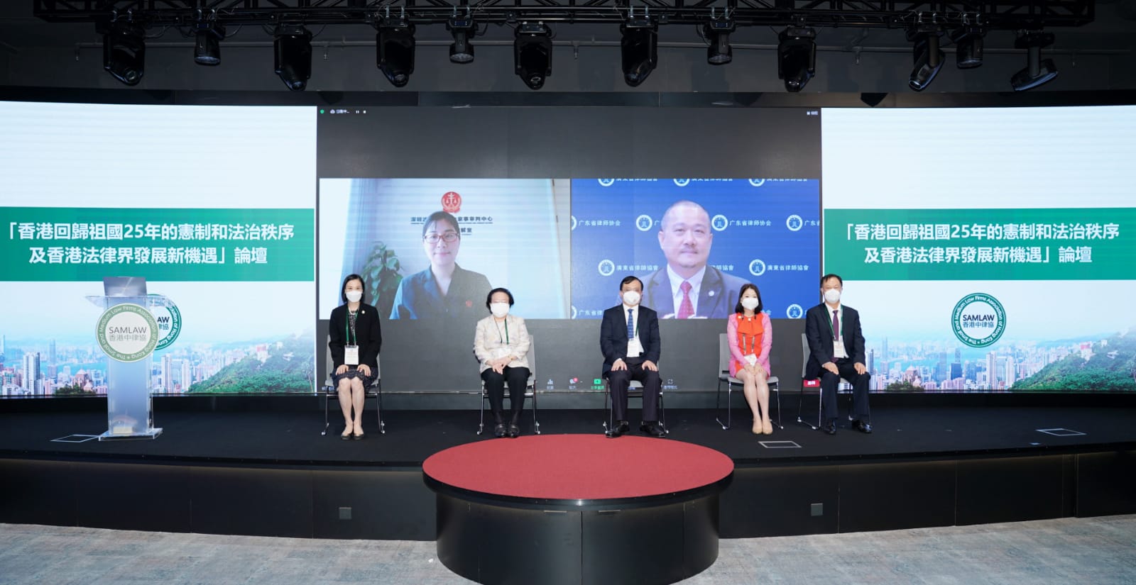 由香港中律協主辦(本會)及廣州仲裁委員會(廣仲)協辦的「香港回歸祖國25年的憲制和法治秩序及香港法律界發展新機遇」高端論壇,今日(9日)舉行,吸引逾200名香港及內地法律、仲裁及調解的專才參與。