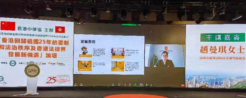 趙曼琪以《與愛同行,共促內地與香港跨境家事糾紛協調解決》為題,講解深圳涉外涉港澳台家事審判中心的工作,指出該中心是一站式、專業化跨境家事糾紛協調解決平台,當中案件以離婚、繼承、撫養為主要類型,具有審理難度大、審判周期長、域外法查明難、域外送達成功率低等特點。她希望在深港兩地跨境家事糾紛協調解決機制的合作展望上,能夠搭建在線調解平台、加強涉港家事案件送達合作及加強司法規則銜接交流。