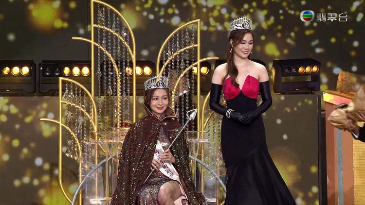 最新出爐港姐冠軍林鈺洧由上屆冠軍宋宛穎為其加冕。(電視截圖)
