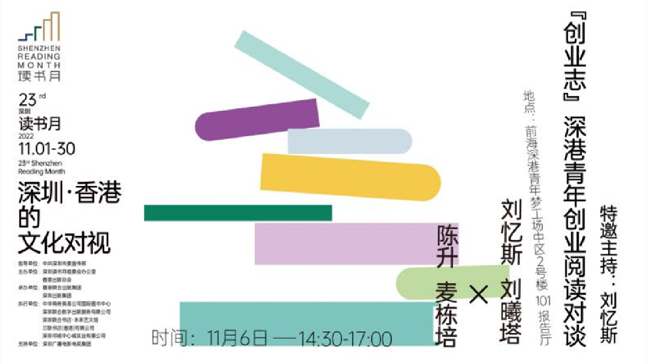 11月6日,創業志 —— 深港青年創業閱讀對談在前海深港青年夢工場舉行。這是第23屆深圳讀書月「當奇蹟之城遇上東方之珠,深圳·香港的文化對視」的第二場活動。深港青年匯聚一堂,從各自視野出發共談在深圳工作、創業的故事,並分享兩地青年文化交流的日常與閱讀書單,共促灣區文化融合。