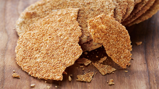 「餅出高門還第一,何如粔籹作人情。」令詩人湛若水讚不絕口的燒餅,之所以受歡迎,除了遵循傳統製作技藝,工藝精湛外,原材料的選擇亦非常重要。據悉,製作周村燒餅所需的原材料小麥粉、芝麻仁、蔗糖和食鹽全部為純天然食材。其中,小麥粉是由生長在淄博丘陵地帶特有的小麥品種磨製而來,這種麵粉麵筋度高低適宜,便於周村燒餅的製作成型,同時又保有良好的酥性。選用的國產芝麻,籽粒較小,皮薄肉厚,營養豐富,香味濃郁。蔗糖則是產自廣東、廣西的甘蔗糖,它在周村燒餅中的作用有三方面,即上色(金黃)、起酥和提味(香甜的口味)。
