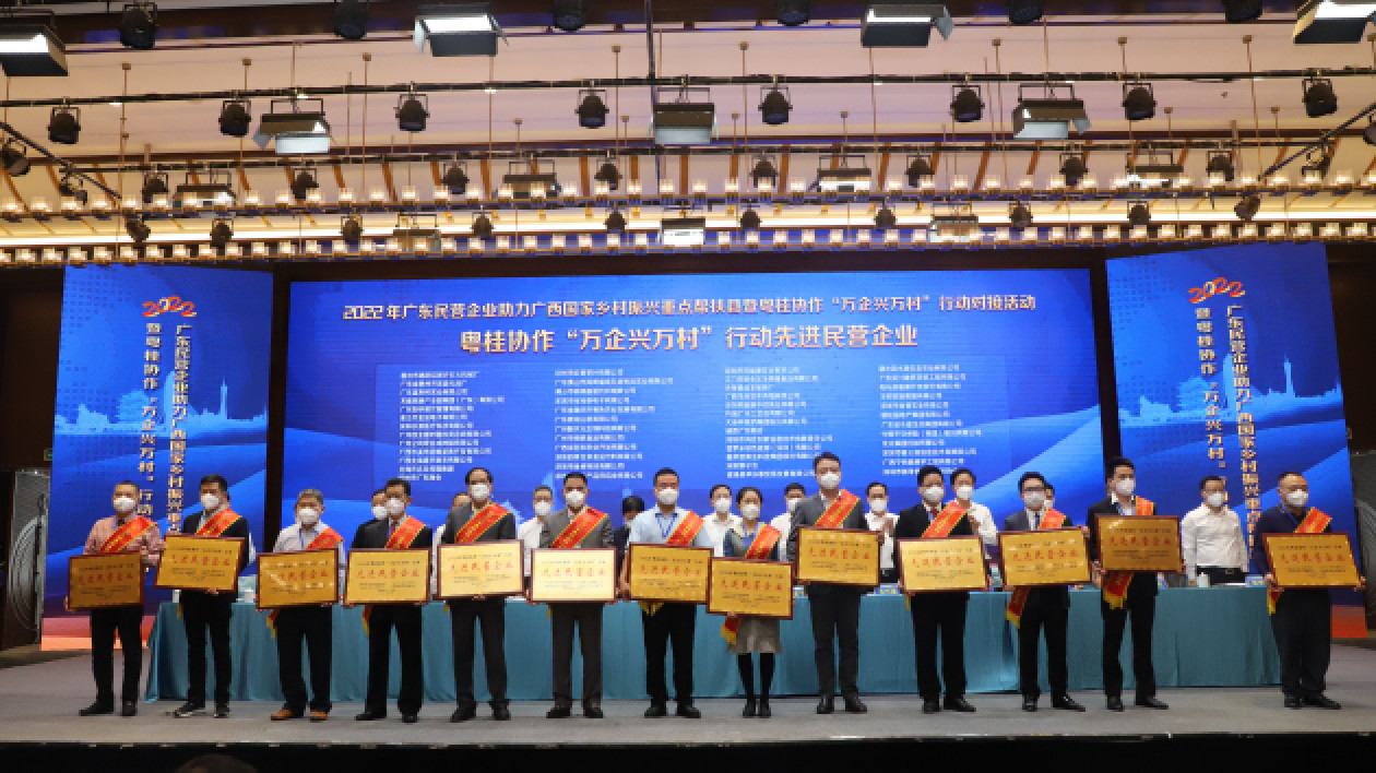 頂圖:2022年,金晉集團榮獲粵桂協作「萬企興萬村」先進民營企業榮譽