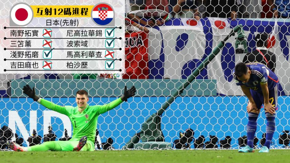 點球大戰中,先射的日本前兩輪派出南野拓實、三笘薰主射,同被利華高域捉到路撲出,而克羅地亞的尼高拉華錫、波索域首兩輪就是全中,領先2比0。進入第3輪,淺野拓磨命中,馬高利華查射中柱不入。第4輪,利華高域又撲出吉田麻也的射門,隨着柏沙歷主射中鵠,格仔軍團12碼贏3比1,合計以4比2淘汰日本,得以晉身8強。