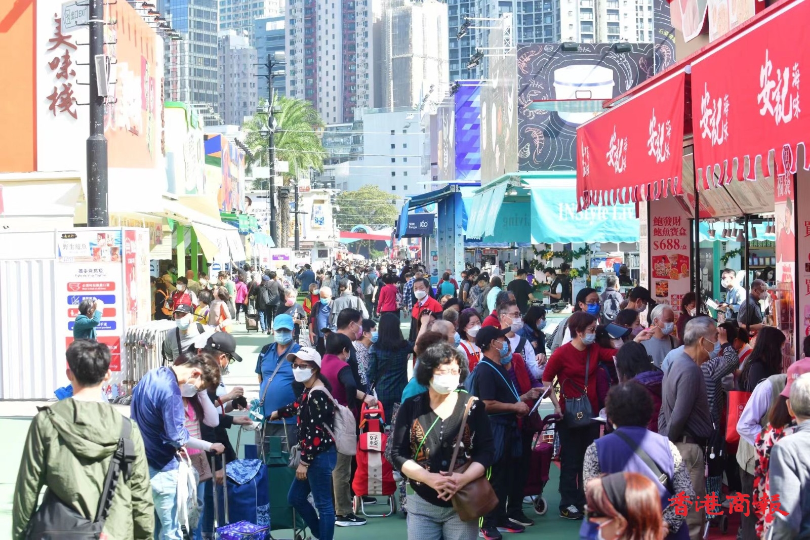 不少攤位人如潮湧,安記海味董事總經理潘權輝表示,對於工展會的銷情有信心,預計生意可增加兩成。隨着節日氣氛愈漸濃厚,他相信市民會購買做節的物資,公司會預留足夠存貨,以應付節日的銷情。他希望整體生意,能恢復到疫情前的狀態。他對大會的安排表示滿意,並願意配合防疫安排。