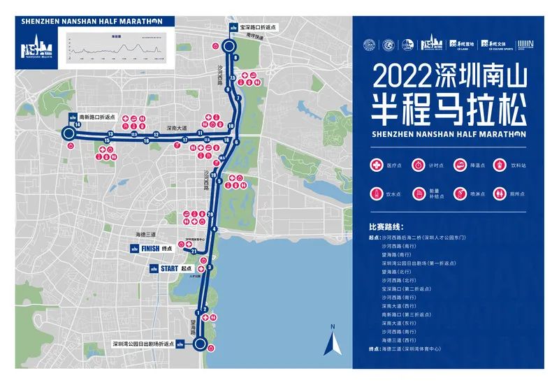 本屆南山半程馬拉松終點為深圳灣體育館,賽道途經深圳灣人才公園、大沙河生態長廊、深圳灣總部經濟片區、深圳大學、南頭古城等多個景點及地標性建築。