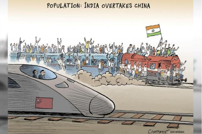 據悉,這張由德國明鏡周刊刊發的漫畫於23日在印度社交平台上廣泛傳播,漫畫內容基於一則有關世界人口大國數據的信息。