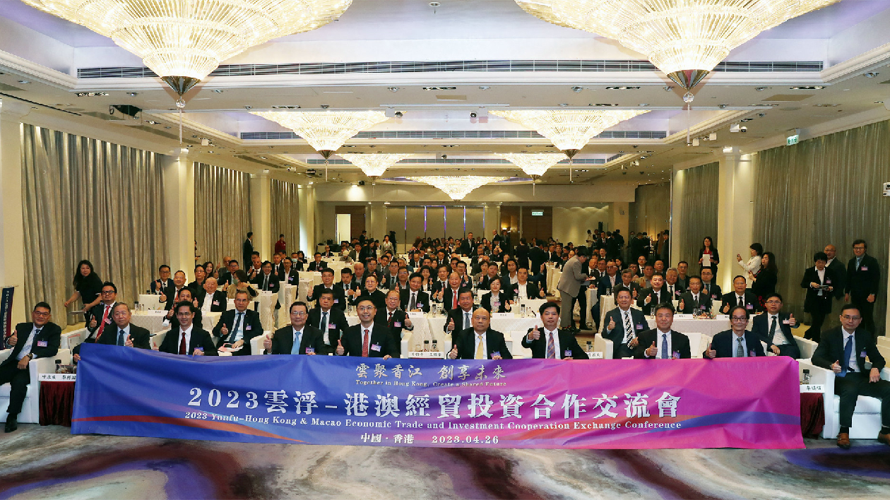 4月26日,2023雲浮——港澳經貿投資合作交流會在香港舉行,圍繞「雲聚香江 創享未來」主題,縱深推動雲港澳三地經貿合作、發展共贏。在活動期間,雲浮向「特聘招商顧問」頒發了證書,為「廣東省雲浮市駐香港招商聯絡處」揭牌,併集中舉行了多個項目簽約、合作框架協議簽訂儀式,其中,8個簽約項目計劃總投資達143.33億元。