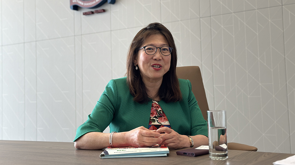 頂圖:銅鑼灣維多利亞幼稚園、維多利亞(中國)教育集團總校長、香港滬江維多利亞學校創辦人兼總校長孔美琪近日接受中新社記者專訪。中新社記者 劉辰瑤 攝