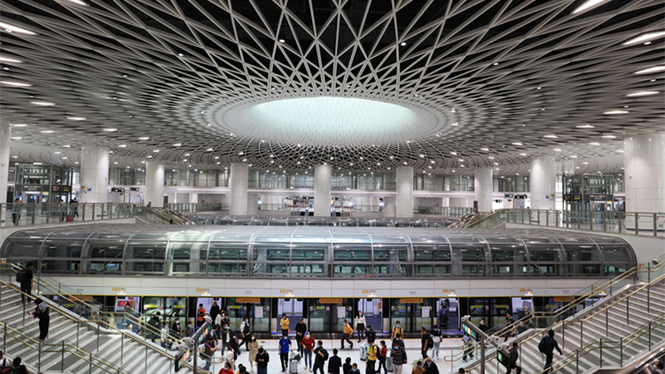 作為中國首個獲得「設計之都」稱號的城市,深圳的設計生態不斷完善,不但在產品設計推陳出新,城市建築設計更是日新月異。在去年年底投入使用、有「深圳之眼」之稱的深圳崗廈北地鐵樞紐,被譽為是為深圳打造的璀璨藝術品。深圳崗廈北地鐵樞紐的中心,是極具未來感的大穹頂,在設計上採用了費馬螺旋、雙向延伸的理念,將創意延伸到了三維空間,無數極具科技感的線條從四面匯聚於「深圳之眼」,又向八方舒展開來,如光芒四射的星,給人帶來強烈的視覺衝擊感。不但吸引深圳市民,更有不少香港人慕名前來打卡。(馮瀚文攝)