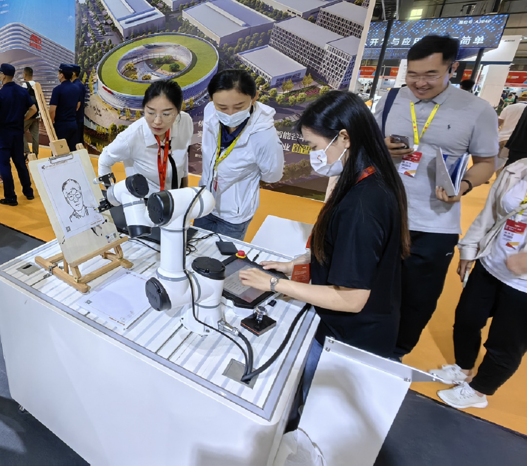 頂圖:智博會展會現場機械人作畫引客商關注