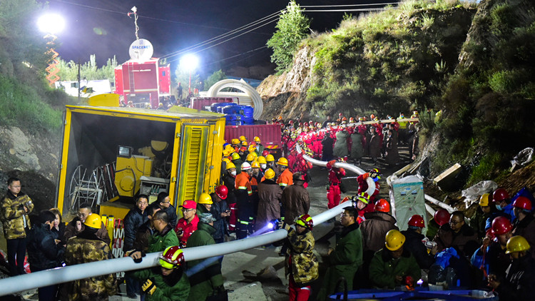 頂圖:2021年6月10日,山西代縣透水事故救援現場。新華社