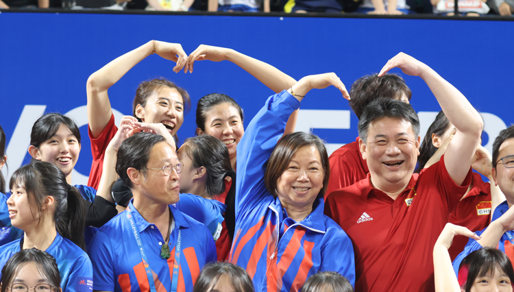 多名香港排球代表隊成員及學界球員有機會與女排切磋排球技術,女排姑娘還悉心指導年青球員,並與她們分組進行對抗比試。活動過後,女排姑娘更與年青球員們來張大合照,並做出畀心動作,流露出中國女排可愛的一面,要數畀心最可愛一員當然是主教練蔡斌啦!蔡帥畀心過後,還是笑容滿面,顯得非常開心。