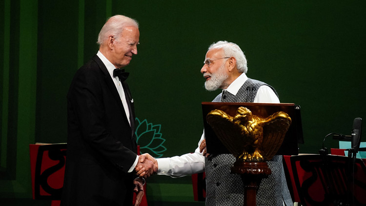 在當天舉行的聯合記者會上,有記者就印度人權問題向拜登和莫迪提問。拜登以美印「彼此坦誠相待,相互尊重」迴避了問題。而莫迪則對有關問題表示「驚訝」,並聲稱印度「絕對沒有基於種姓、信仰、年齡或地域的歧視」。