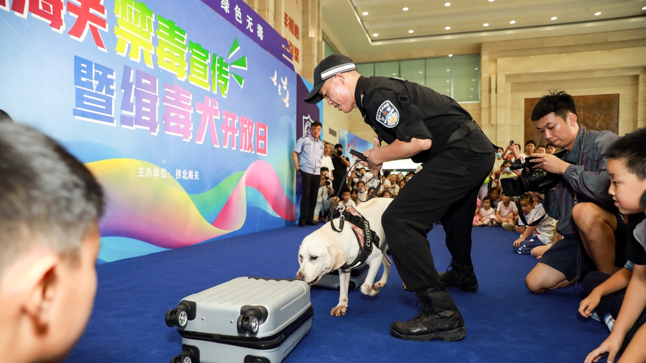 繪畫識毒、禁毒遊戲、「明星犬」獻上「禁毒課」……6月24日上午,在第36個「6·26國際禁毒日」來臨之際,拱北海關舉辦禁毒宣傳暨緝毒犬開放日活動,通過種種寓教於樂的活動,號召公眾參與全民禁毒,自覺抵制毒品。活動吸引了近300人參加。