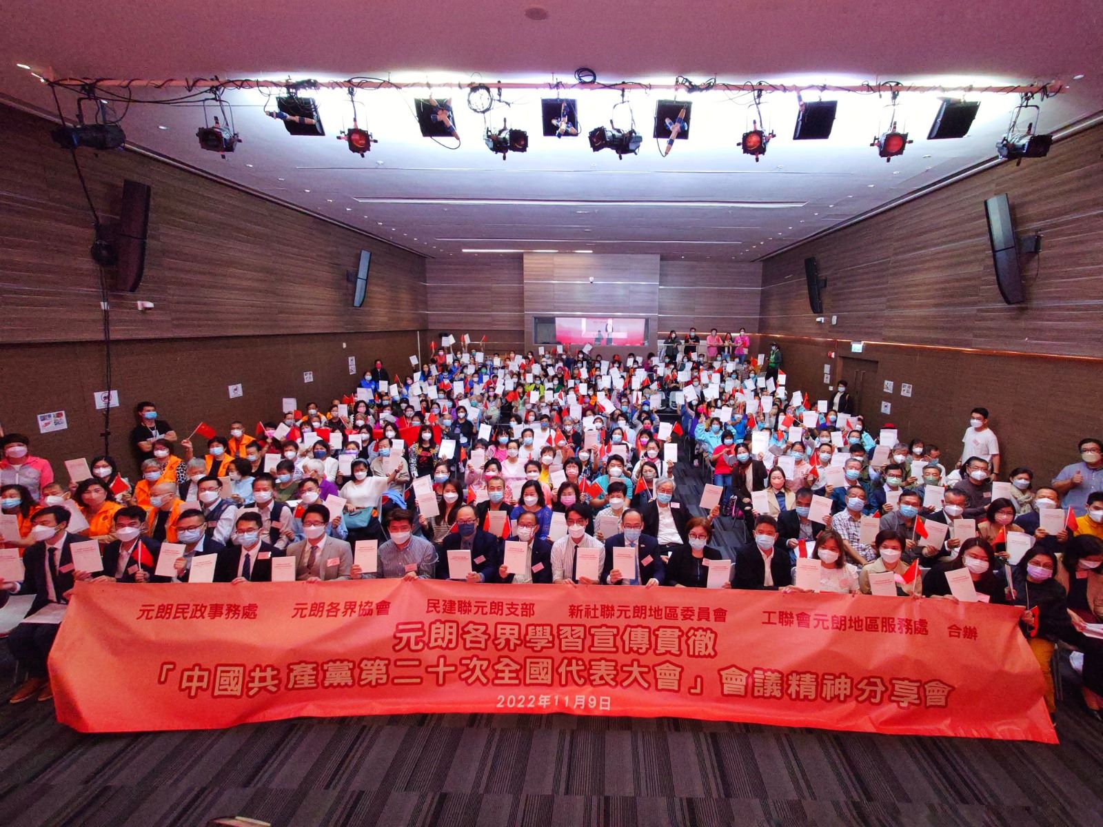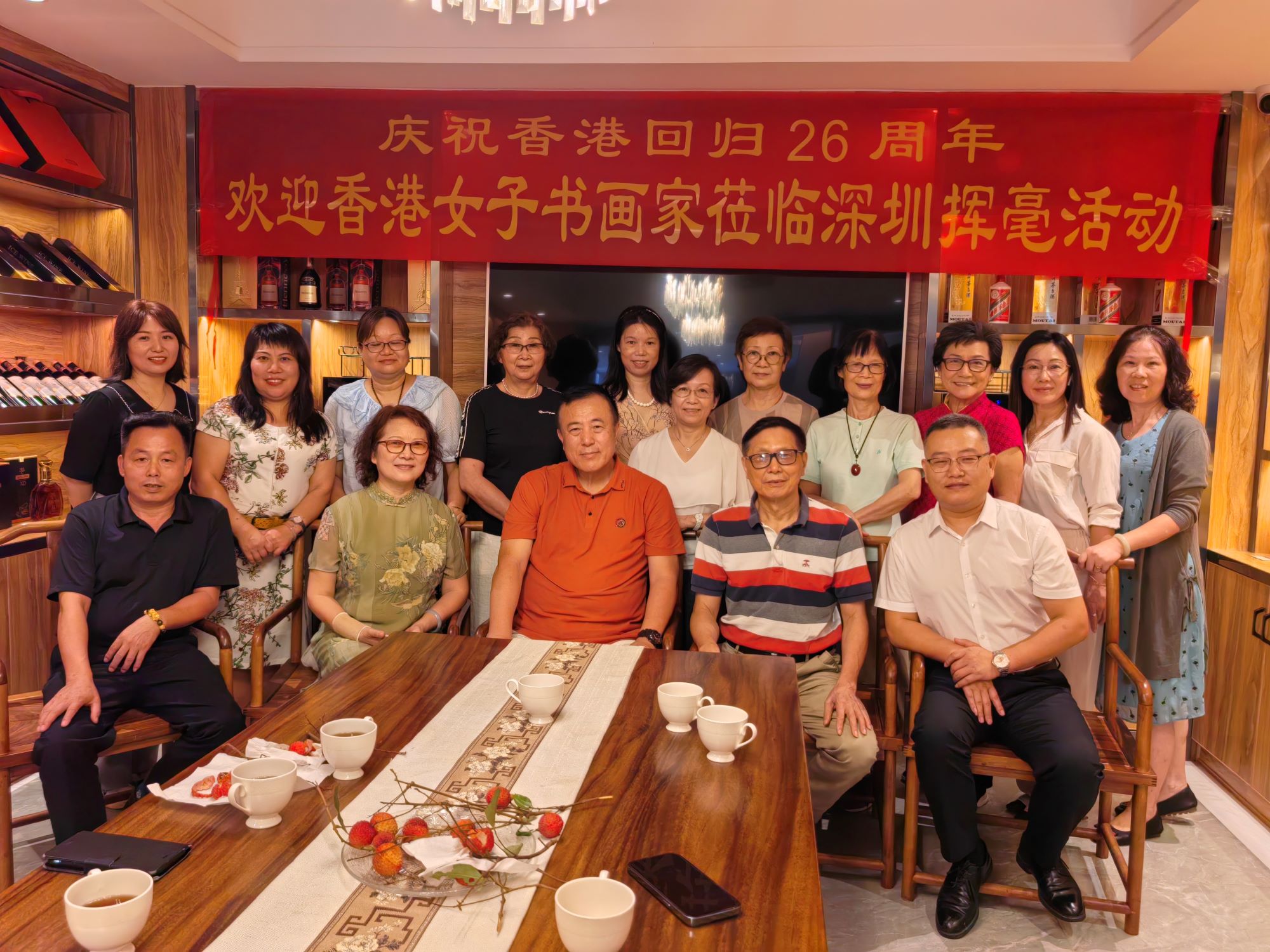 頂圖:中央港澳工作辦公室副主任楊萬明(前排左六)與訪京團合影。