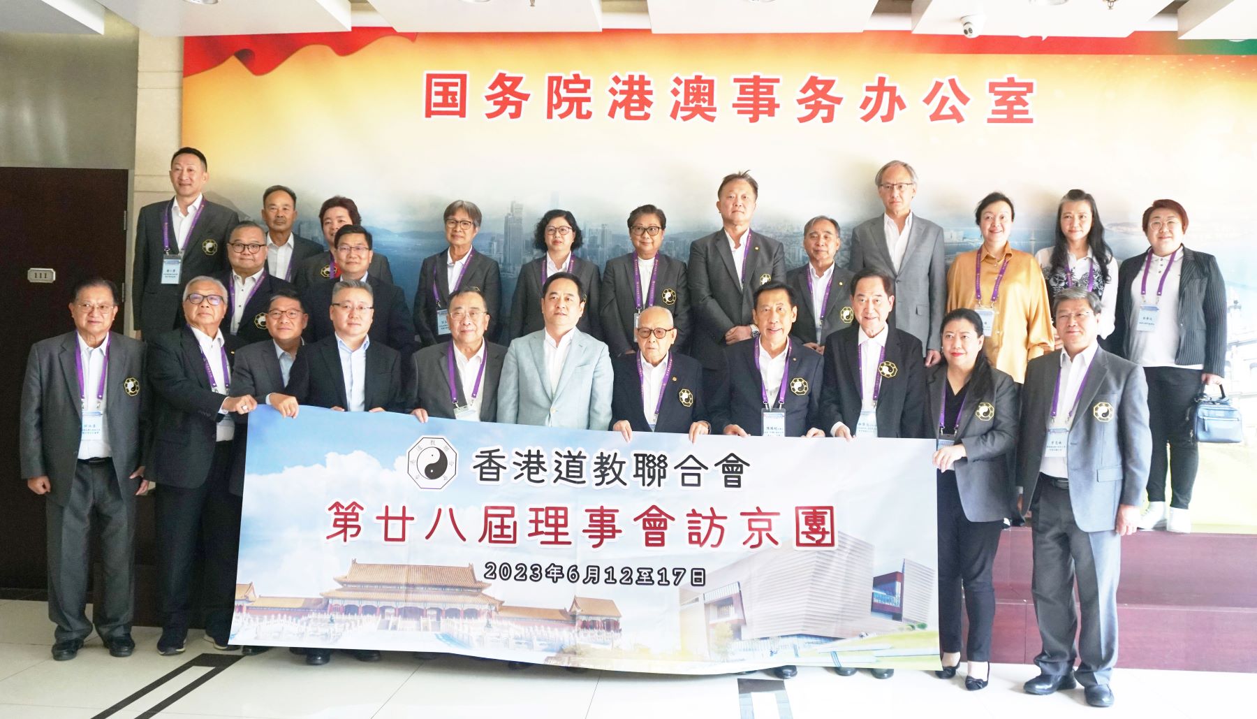 訪京團獲中央統戰部副部長陳瑞峰、中央港澳工作辦公室主任副主任楊萬明、中國道教協會會長李光富等接見。香港道教聯合會首長向上述單位領導報告了過去三年新冠疫情期間,對於社會公益、發揚中華傳統優秀文化等各方面的工作;以及在配合國家「十四五」規劃的方針下,香港道教聯合會未來發展的方向,並提到籌建香港道教文化中心的願望。