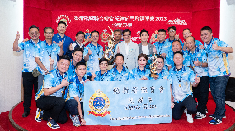 香港飛鏢聯合總會昨日(8日)舉行香港紀律部門飛鏢聯賽2023頒獎典禮,懲教署經過雙循環比賽後勇奪金杯賽冠軍。