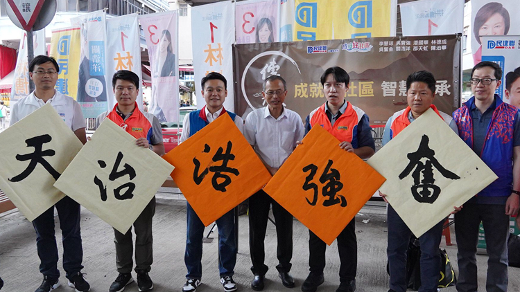 頂圖:九龍城南候選人、香港新方向成員馬志恆與義工合照。記者 馮俊文攝