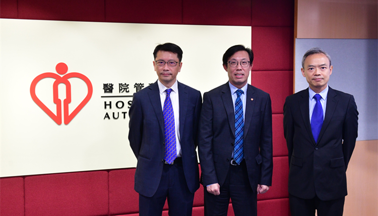 醫管局總行政經理李立業(中)、瑪嘉烈醫院內科及老人科副部門主管楊耀昌(右)、東區尤德夫人那打素醫院兒童及青少年科部門主管李國彪(左),交代醫管局如何應對冬季流感高峰期。(記者 崔俊良攝)
