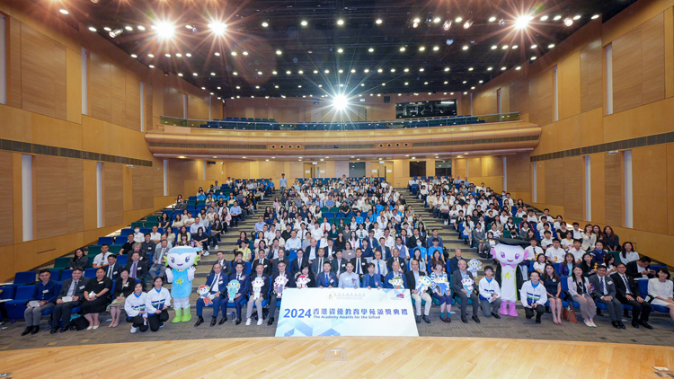 頂圖圖説:11日舉行首屆「香港資優教育學苑頒獎典禮」,逾百位在本地、全國及國際賽事中表現優異的學員,以及對學苑和社會有傑出貢獻的校友獲嘉許,場面盛大。
