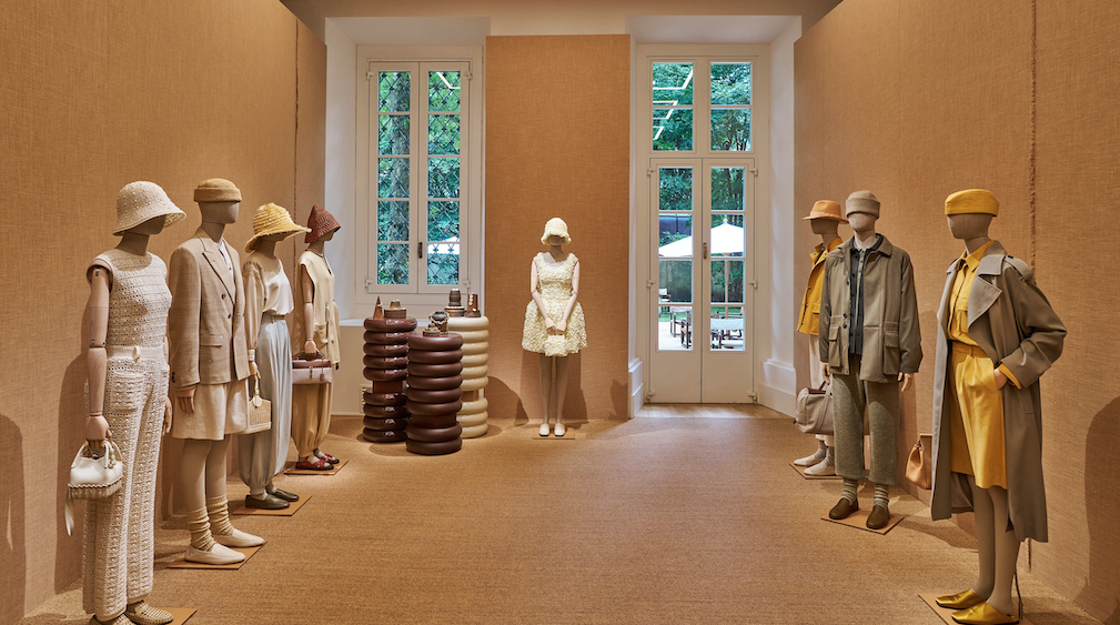 此次時裝秀在米蘭貝爾吉奧伊奧索宮舉行,展示空間充滿自然感。牆壁與地板採用黃麻纖維裝飾,搭配木質家具,營造出輕鬆的春夏氛圍。展覽還展示了藝術家 Adriana Meunié 的作品,她通過自己的藝術手法,探索了亞麻的多樣性和變化,使這種面料不僅是時裝的一部分,更成為了一種藝術表達。