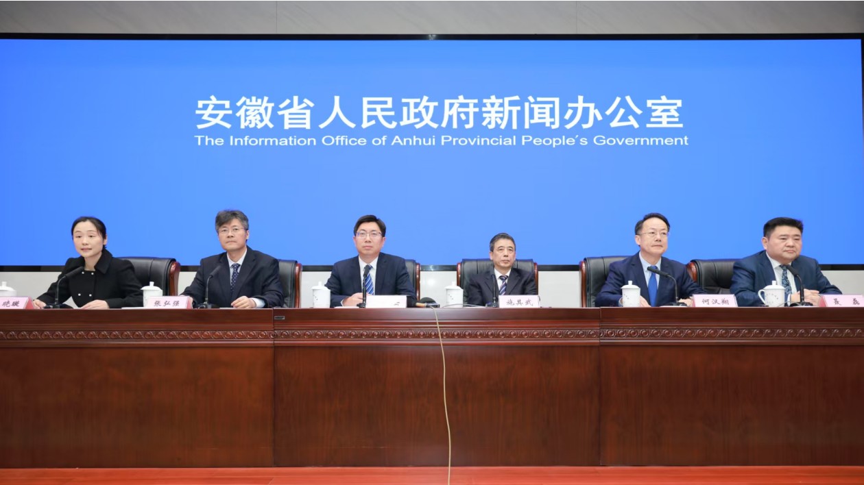 頂圖:安徽省政府新聞辦在省行政中心舉行新聞發布會,省發展改革委副主任張雲,國家金融監督管理總局安徽監管局一級巡視員施其武,省商務廳副廳長張弘強,省市場監管局副局長何漢翔以及省工商聯副主席聶磊出席,省委宣傳部新聞發布處副處長史曉璇主持會議