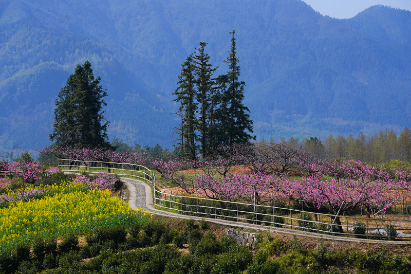 隨着氣溫漸暖,三月只剩下了個小尾巴,皖南黟縣碧陽鎮五里村的千畝桃園迎來盛花期。