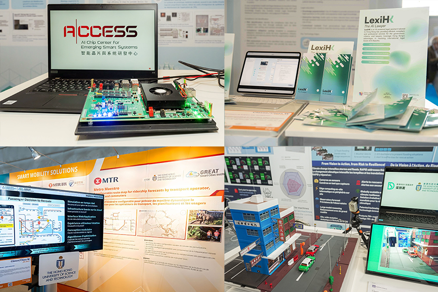 今年,不少參展項目均由科大與政府及業界夥伴共同開發,盡顯科大具能力轉化科研成果貢獻社會。這些跨領域、跨學科的研發,旨在以堅實的科研基礎,為全球包括醫療健康、氣象預測、交通車流控制、汽車與機械人、洪水預警及乘客出行模式等不同領域所面對的挑戰,提供實際解決方案。當中三個研究項目由具海外研究團隊參與的兩個科大InnoHK創新香港研發平台﹕「智能晶片與系統研發中心(ACCESS)」及「香港生成式人工智能研發中心(HKGAI)」所領導。