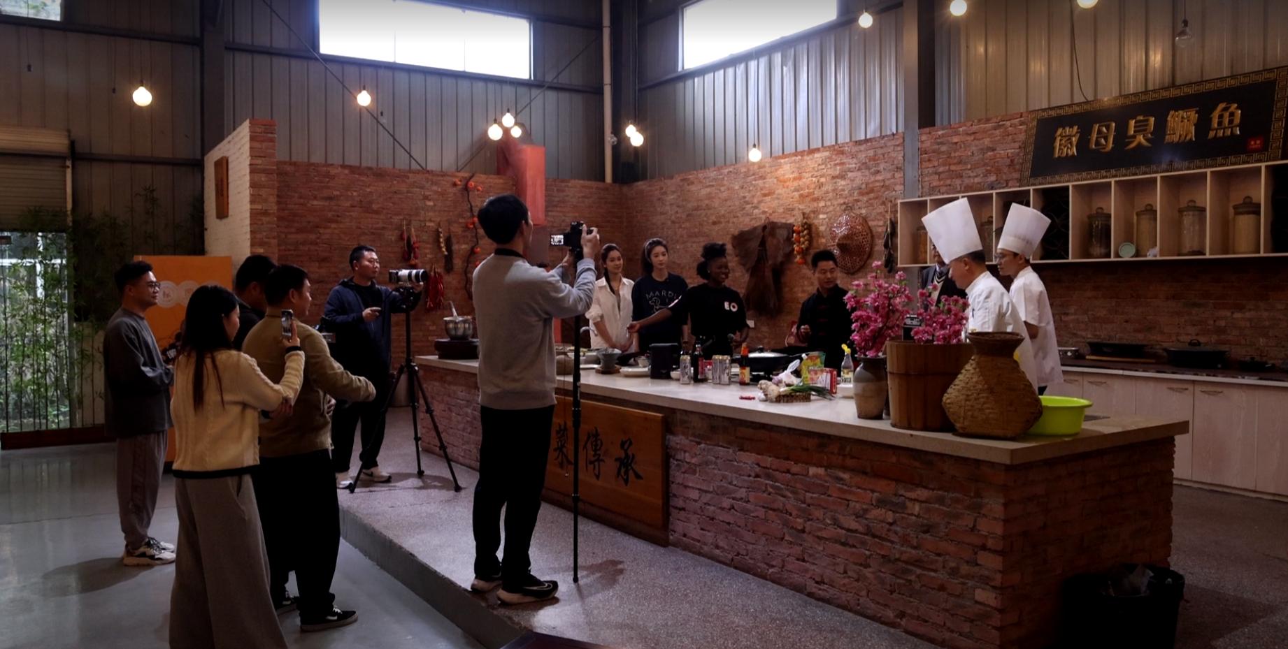 在徽母臭鱖魚的拍攝現場,三位參賽選手在徽母臭鱖魚傳承人汪洋的教授下,學習了臭鱖魚的燒法,並親手燒制了這道徽州名菜。