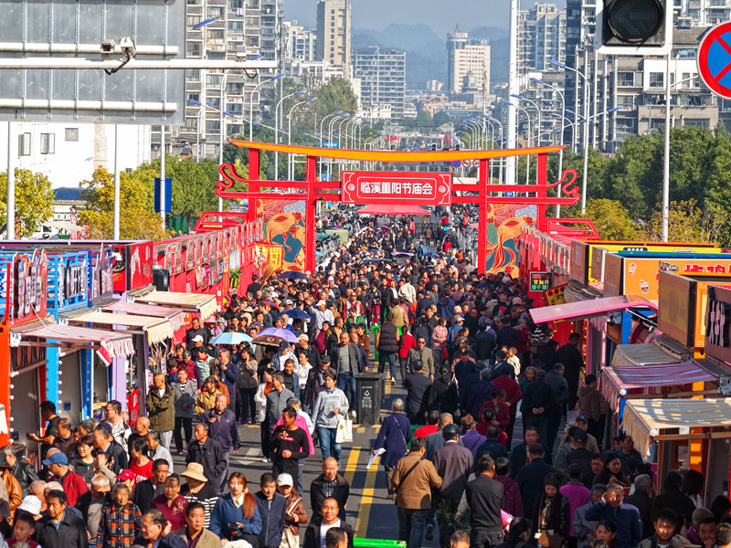 農曆九月九日,重陽佳節如期而至。在安徽省休寧縣,當地傳承千年的臨溪重陽節廟會熱鬧開啟,非遺民俗融合特色美食,豐富多彩的物資交流活動,撬動鄉村消費新動能。