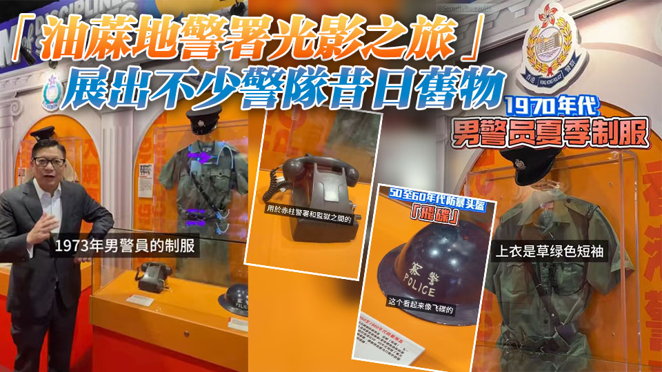 最近開放的「油蔴地警署光影之旅」人氣火爆!場內不但神還原了多個經典港產警匪片場景,還展出了各種警察舊物,包括上世紀六七十年代的制服,保安局局長鄧炳強今日(4日)在社交網站發布影片介紹有關展覽,他說其實在早前的「紀律部隊博物館」限定展覽中,也展出了不少警隊昔日的物品,包括在上世紀六七十年代警員穿着的草綠色短戈褲制服和「飛碟」防暴頭盔。
