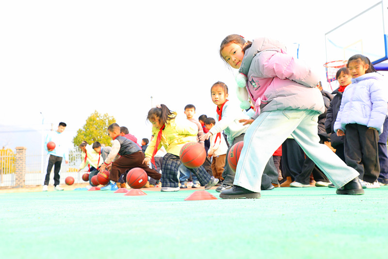 1月6日,安徽黟縣育才體育的專業教練走進碧陽小學,為二年級學生帶來了一堂以「快樂籃球,健康成長」為主題的公益籃球課。課程針對低齡學生特點,採用遊戲化、互動式教學,在充滿趣味的氛圍中,教練耐心指導孩子們學習了運球、傳球、投籃等基本籃球動作。