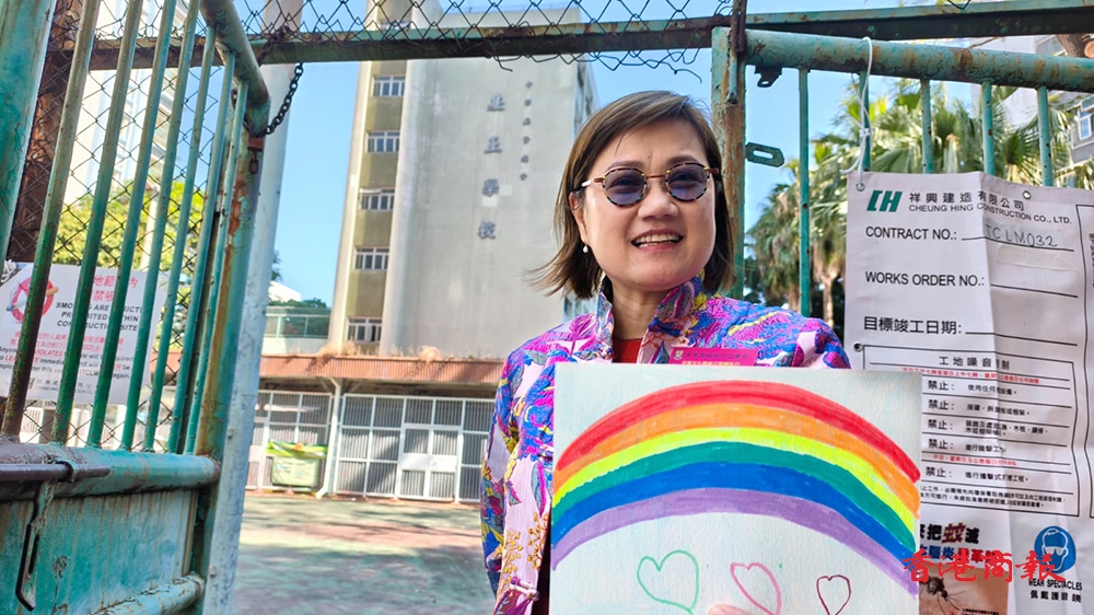 頂圖: 大埔浸信會公立學校校長蕭婷感恩教育局在短時間內,提供校舍作為學校新學年上學的地方。