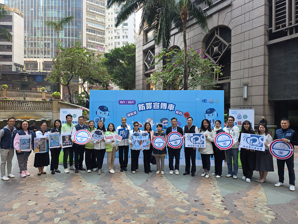 由今日起至1月26日,防罪科的防罪宣傳車將走遍港九新界,透過互動遊戲、防罪講解及紀念品派發,與市民近距離傳遞最新防罪資訊,以提升公眾於歲末期間的防罪意識。鑑於不少市民會在歲末長假期外遊,或到訪人多擠迫的地方,是次宣傳以「爆竊」、「行劫」、「店舖盜竊」及「詐騙」為重點,以提升公眾防爆竊、防盜及防騙意識。防罪宣傳車透過多項互動遊戲,讓市民獲取最新防罪資訊。