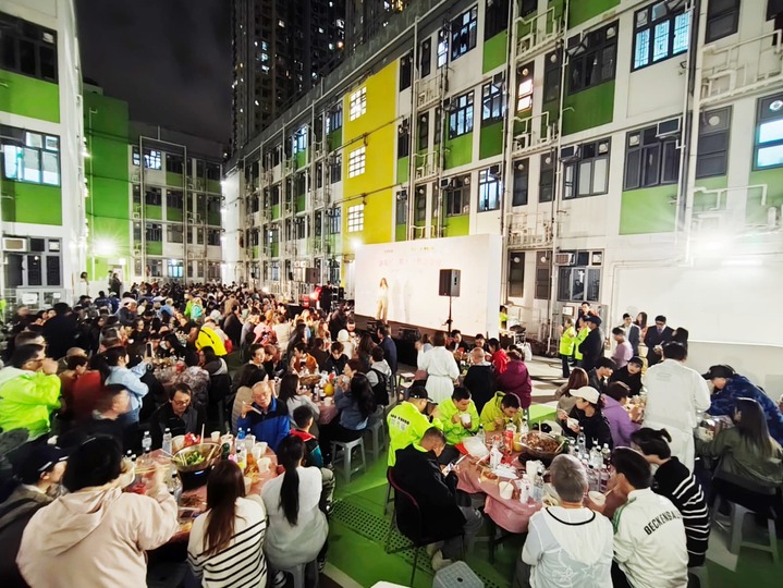 大埔宏福苑五級大火發生至今近三個月,部分災民搬到位於啟德的過渡性房屋「啟福居」暫住,由前行政長官梁振英太太梁唐青儀發起及贊助的慈善機構「齊惜福」今晚(7日) 在「啟福居」舉行「暖心共聚盆菜宴」,多名災民踴躍參與。