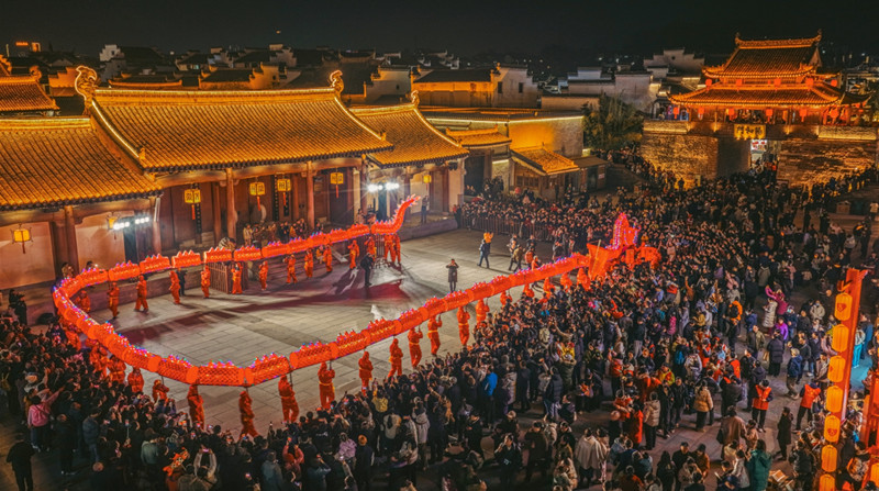 隨着春節的到來,更多民俗表演將在徽州古城接連上演,盡顯中華傳統文化的多元魅力與深厚底蘊。「舞龍舞獅一出場,整個廣場的氣氛瞬間就被點燃了,非常精彩! 讓我感受到濃濃的年味兒和傳統文化的底蘊,特別有意義。」江蘇遊客陳悅興奮地告訴記者。(記者 吳敏 通訊員 吳燦 余晨翔 汪潔 圖/程子偉)